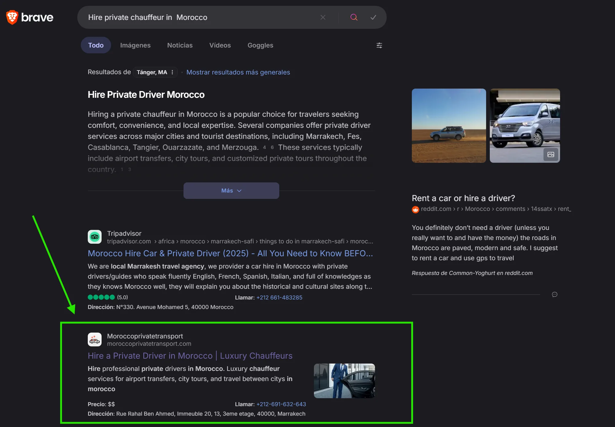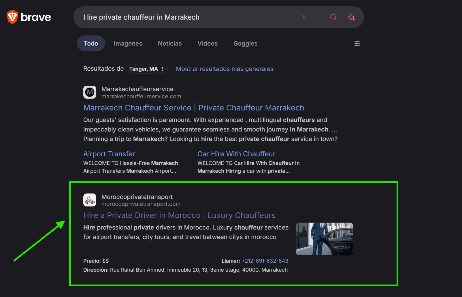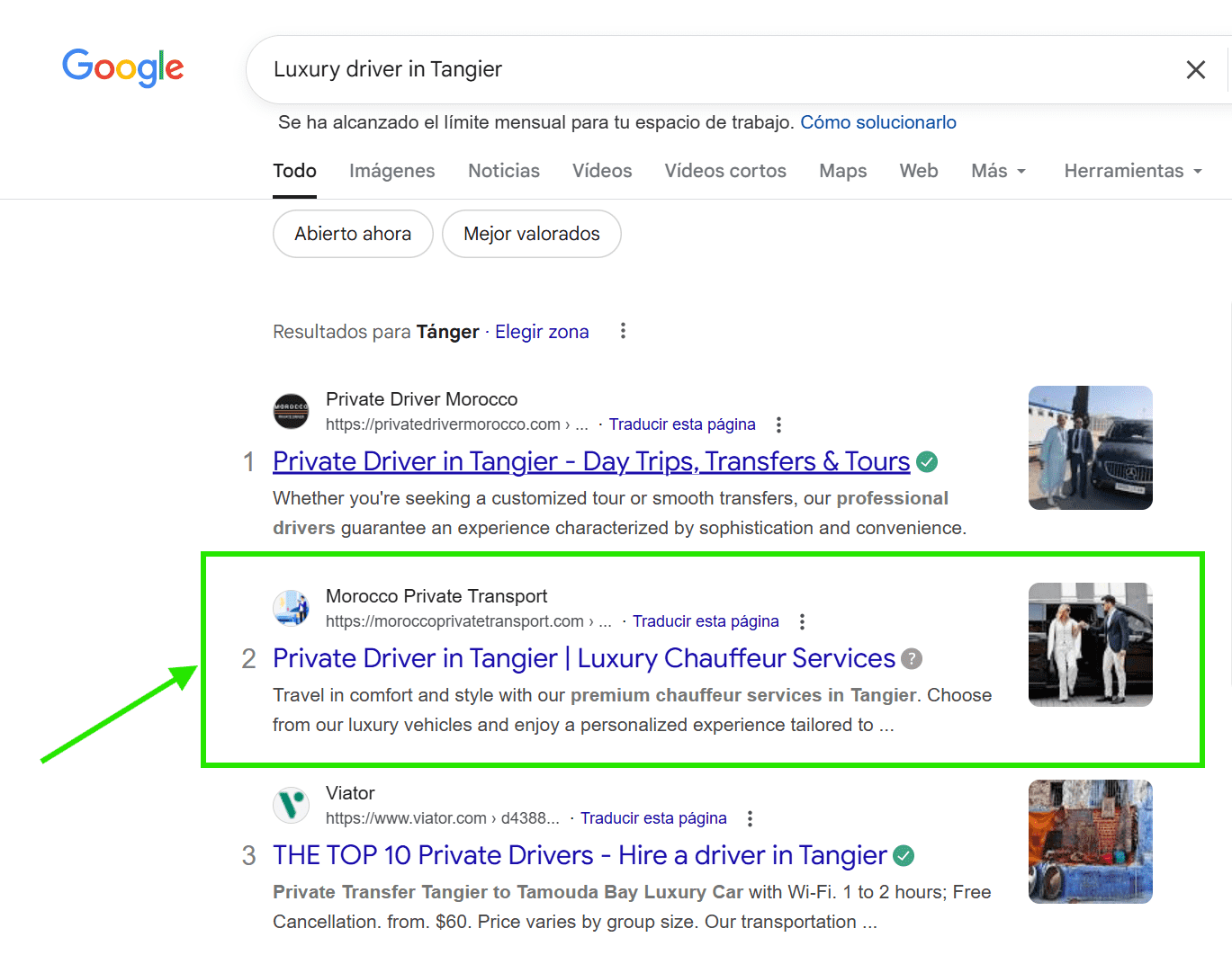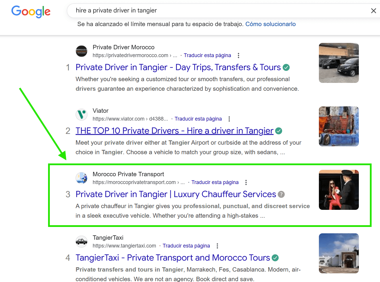 Morocco Private Transport, a private driver service company in Morocco, approached One Prose to improve their visibility on Google Maps. After seeing significant results, they opted for a website that now ranks in the top three in several Moroccan cities with keywords related to their services.