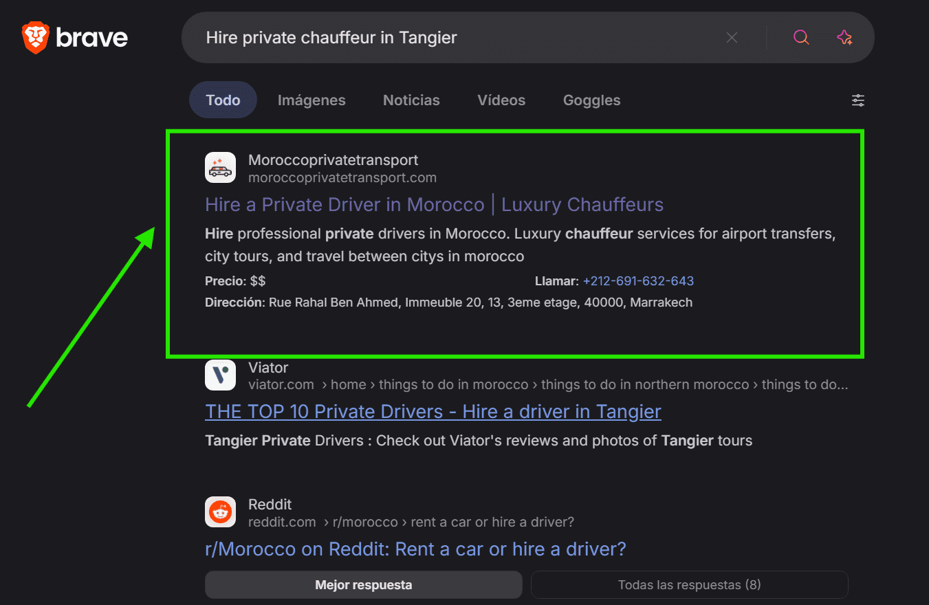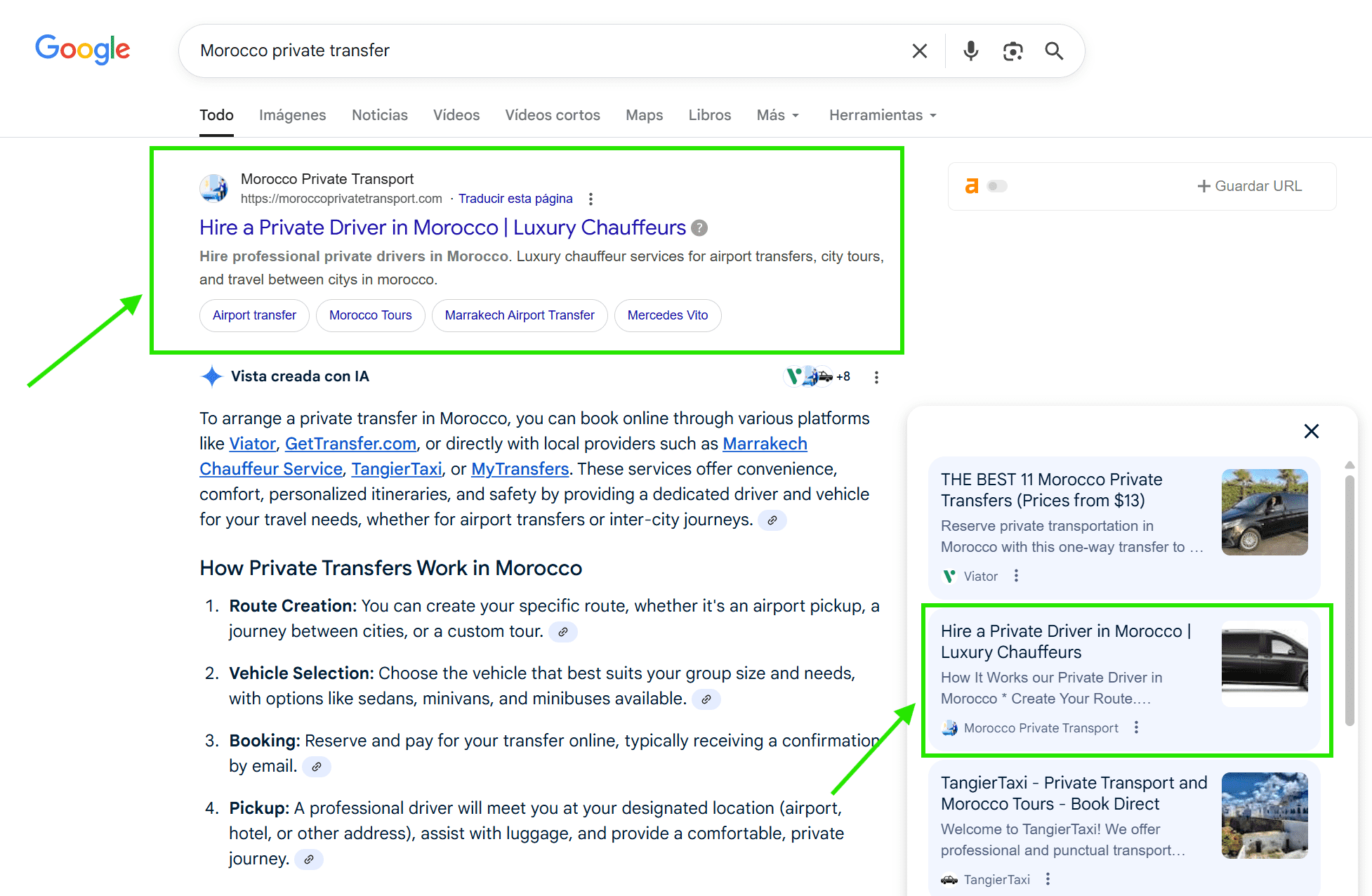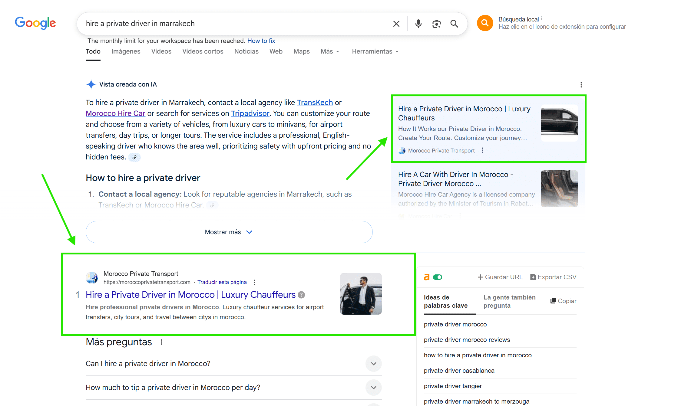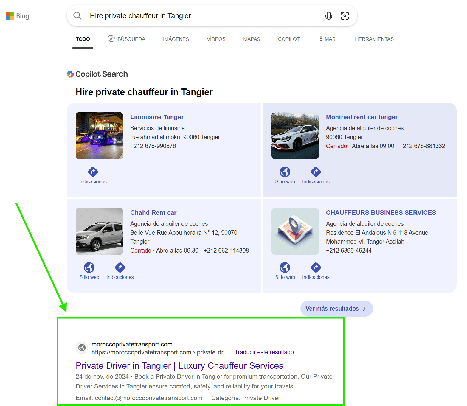 Morocco Private Transport, a private driver service company in Morocco, approached One Prose to improve their visibility on Google Maps. After seeing significant results, they opted for a website that now ranks in the top three in several Moroccan cities with keywords related to their services.
