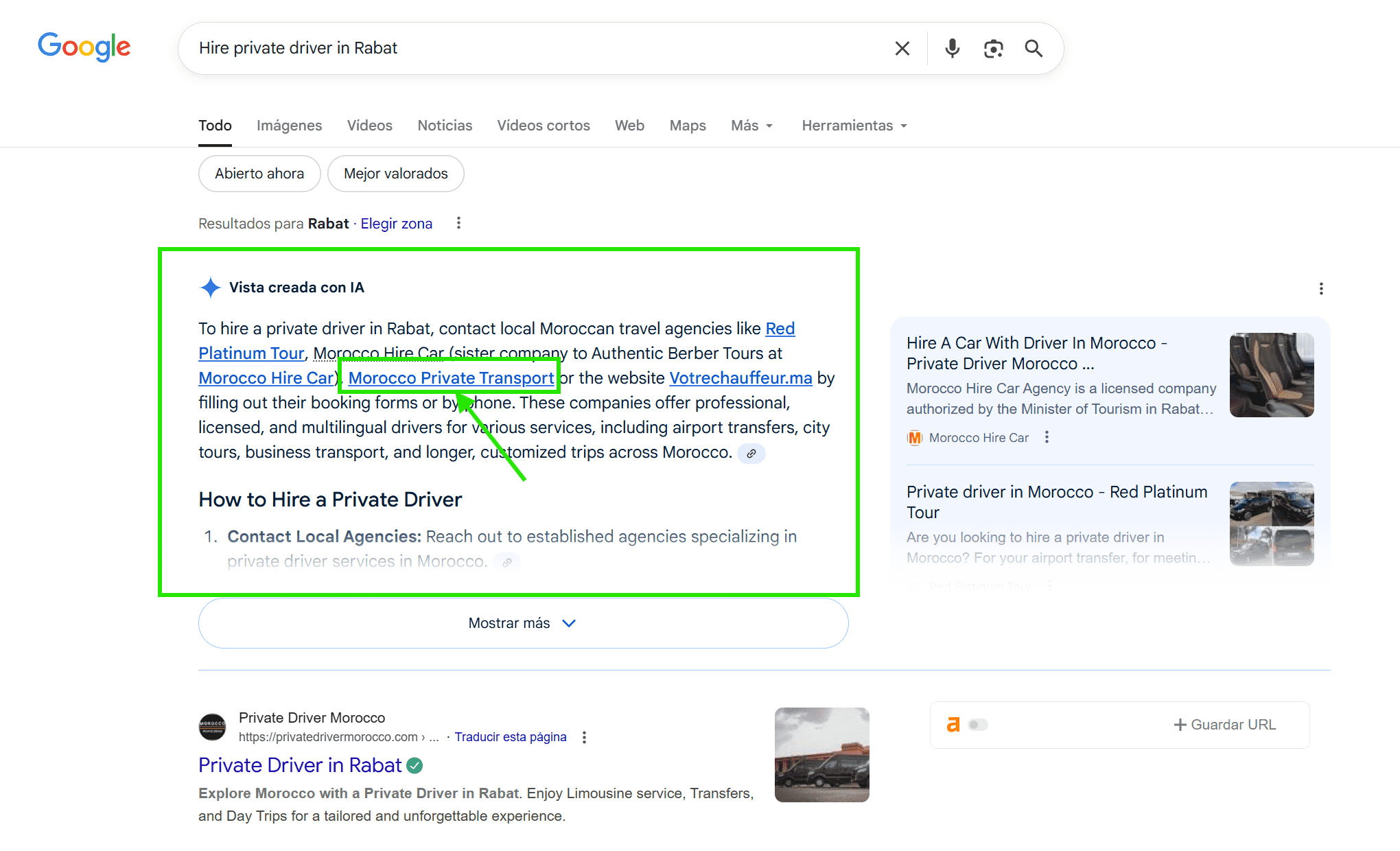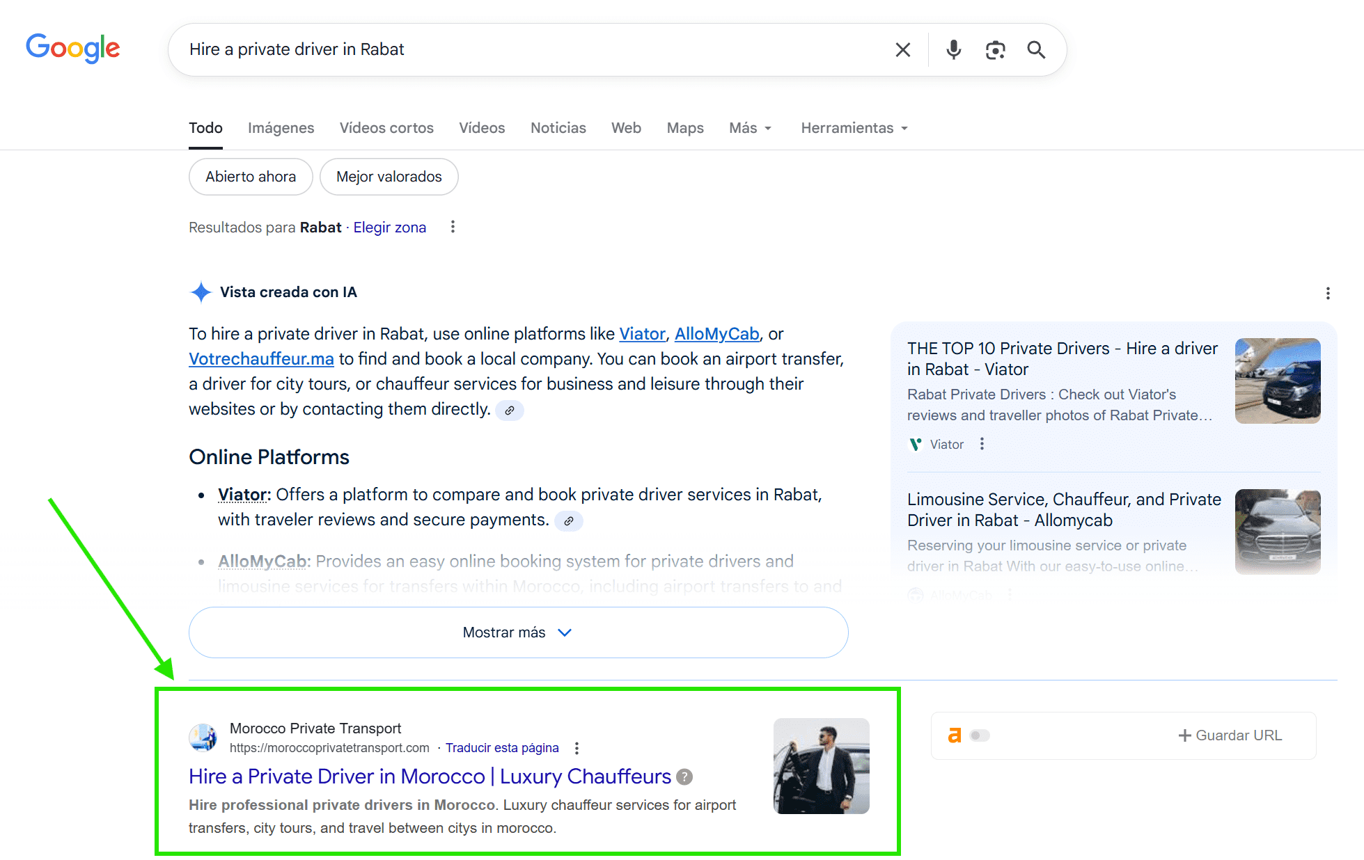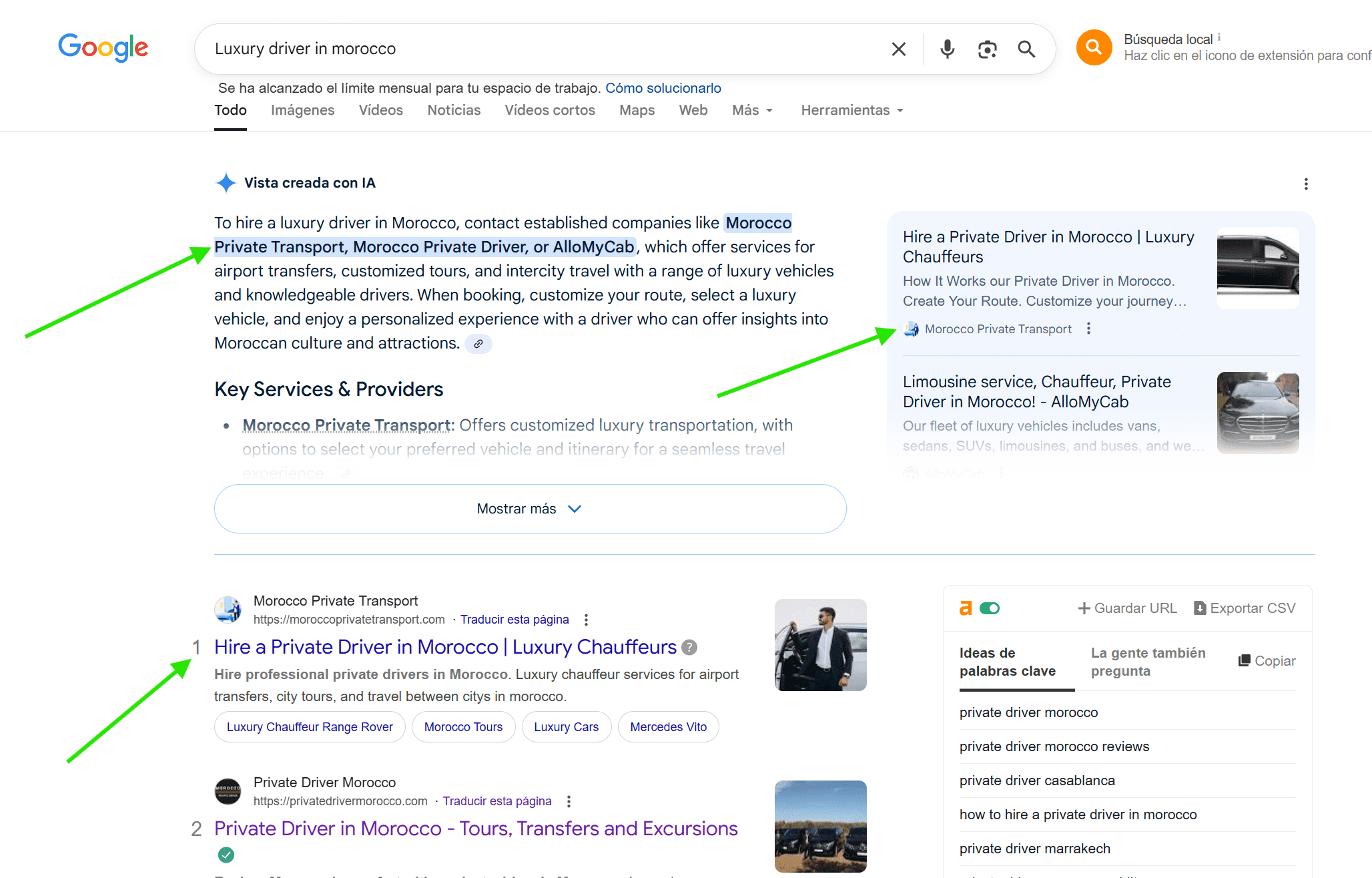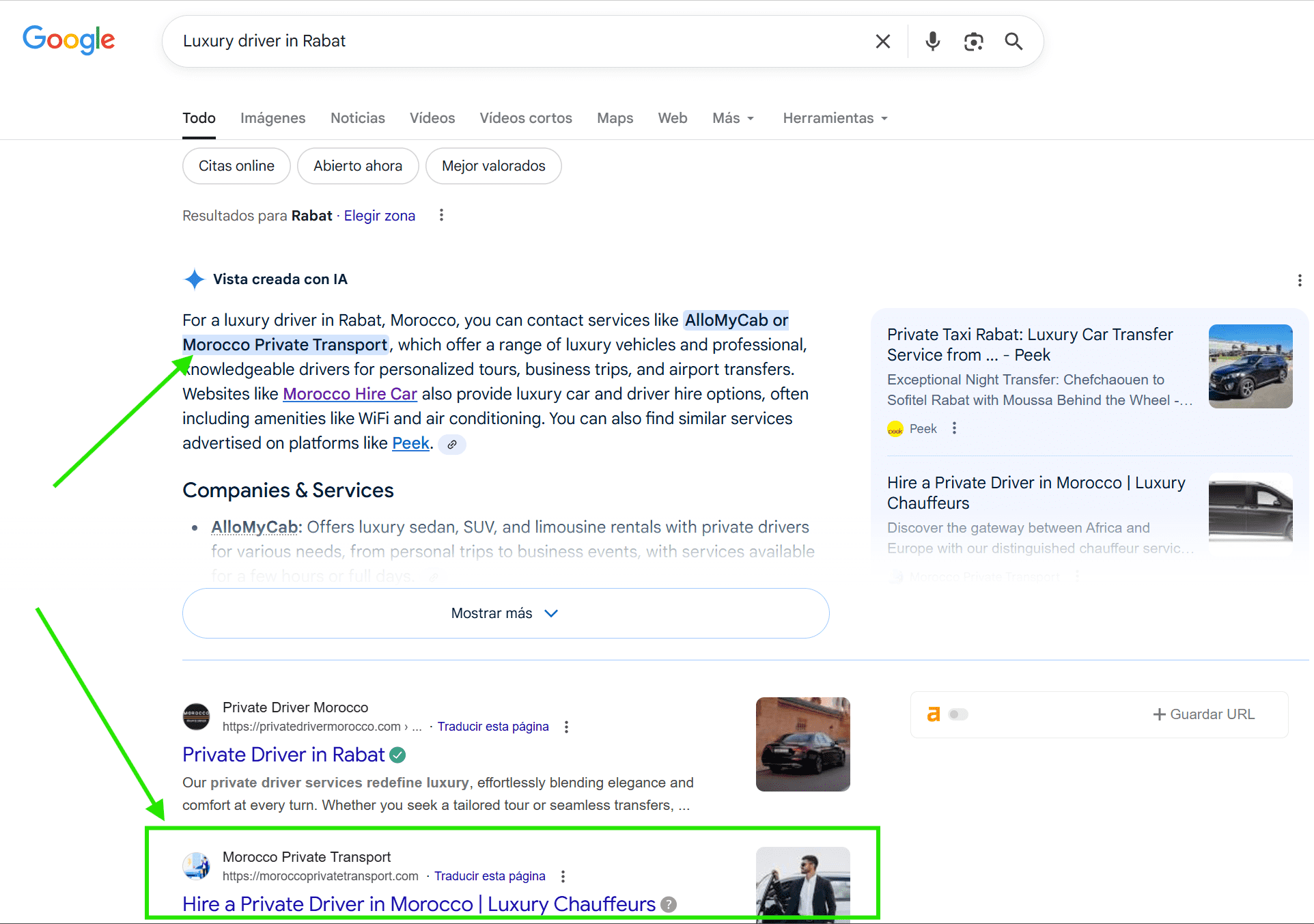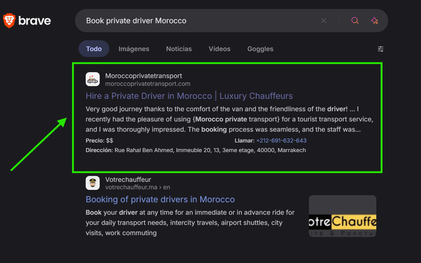 Morocco Private Transport, a private driver service company in Morocco, approached One Prose to improve their visibility on Google Maps. After seeing significant results, they opted for a website that now ranks in the top three in several Moroccan cities with keywords related to their services.